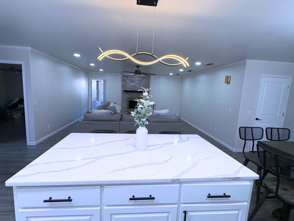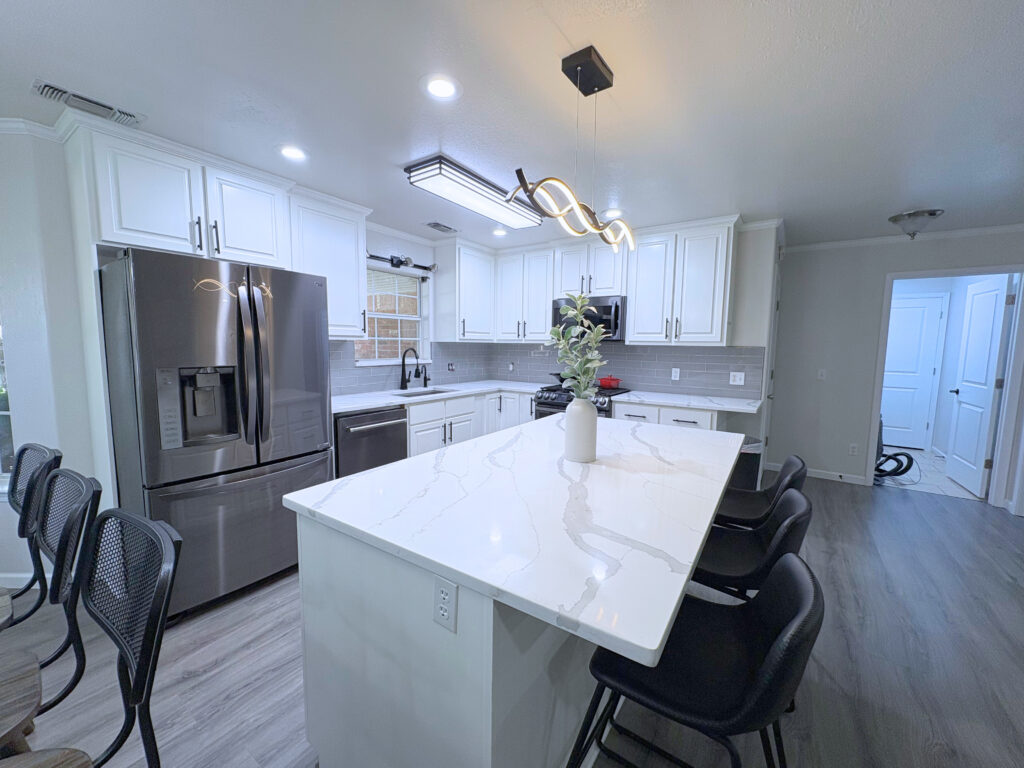 This beautiful home is conveniently located near schools in a family-friendly neighborhood. You’ll love the open feel of the kitchen, complete with gorgeous countertops, recessed lighting, and a spacious island — all overlooking the living room, where you can relax by the warmth of the fireplace.