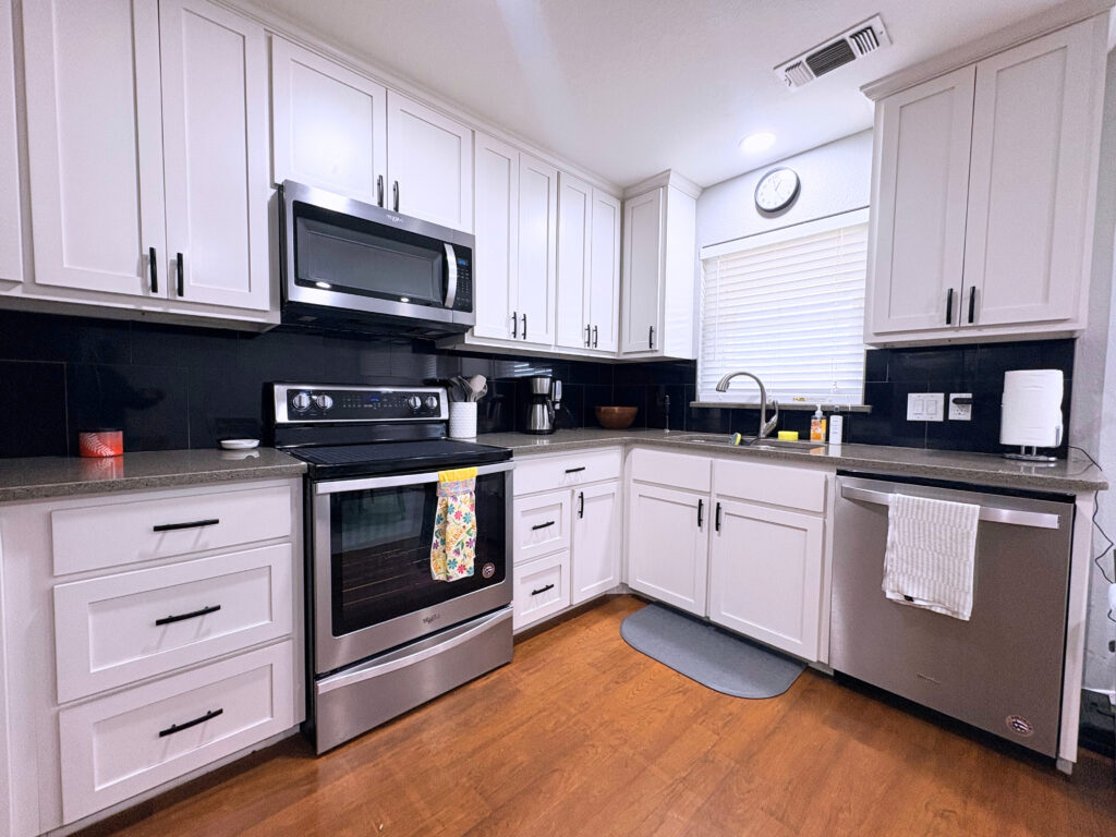 Inside, cozy up on cool evenings by the wood-burning fireplace. The home includes an electric range, microwave, and dishwasher, eliminating the hassle and making this move even easier.