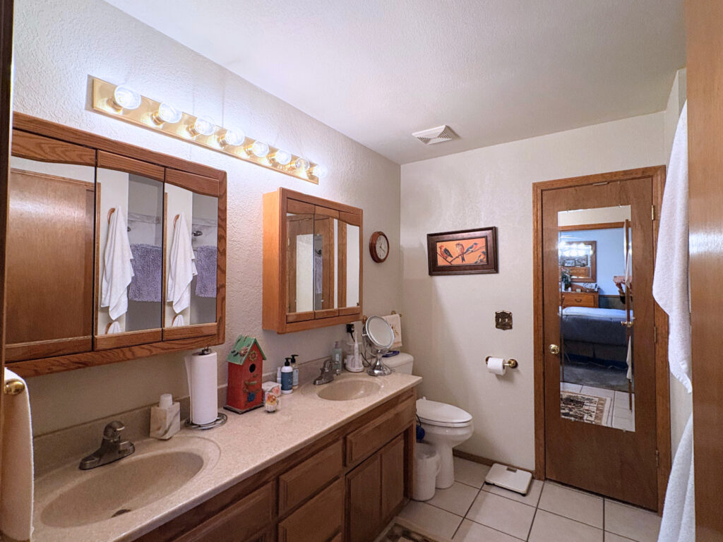 The secondary bedrooms are thoughtfully designed with built-in desks, creating the perfect space for homework, hobbies, or remote learning. In the primary suite, you’ll appreciate the convenience of dual sinks and separate medicine cabinets, providing both functionality and personal space.