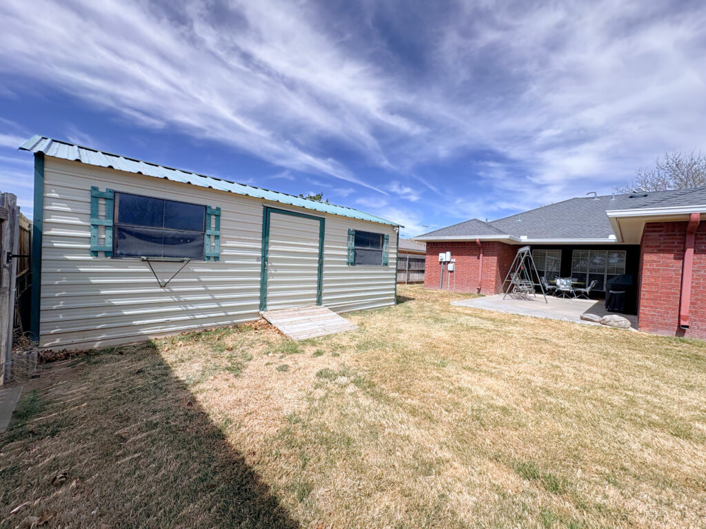Outside, enjoy summer evenings under the covered patio, perfect for entertaining or unwinding after a long day. The backyard also includes a versatile outbuilding that can be used for storage, a workshop, or whatever fits your needs.
